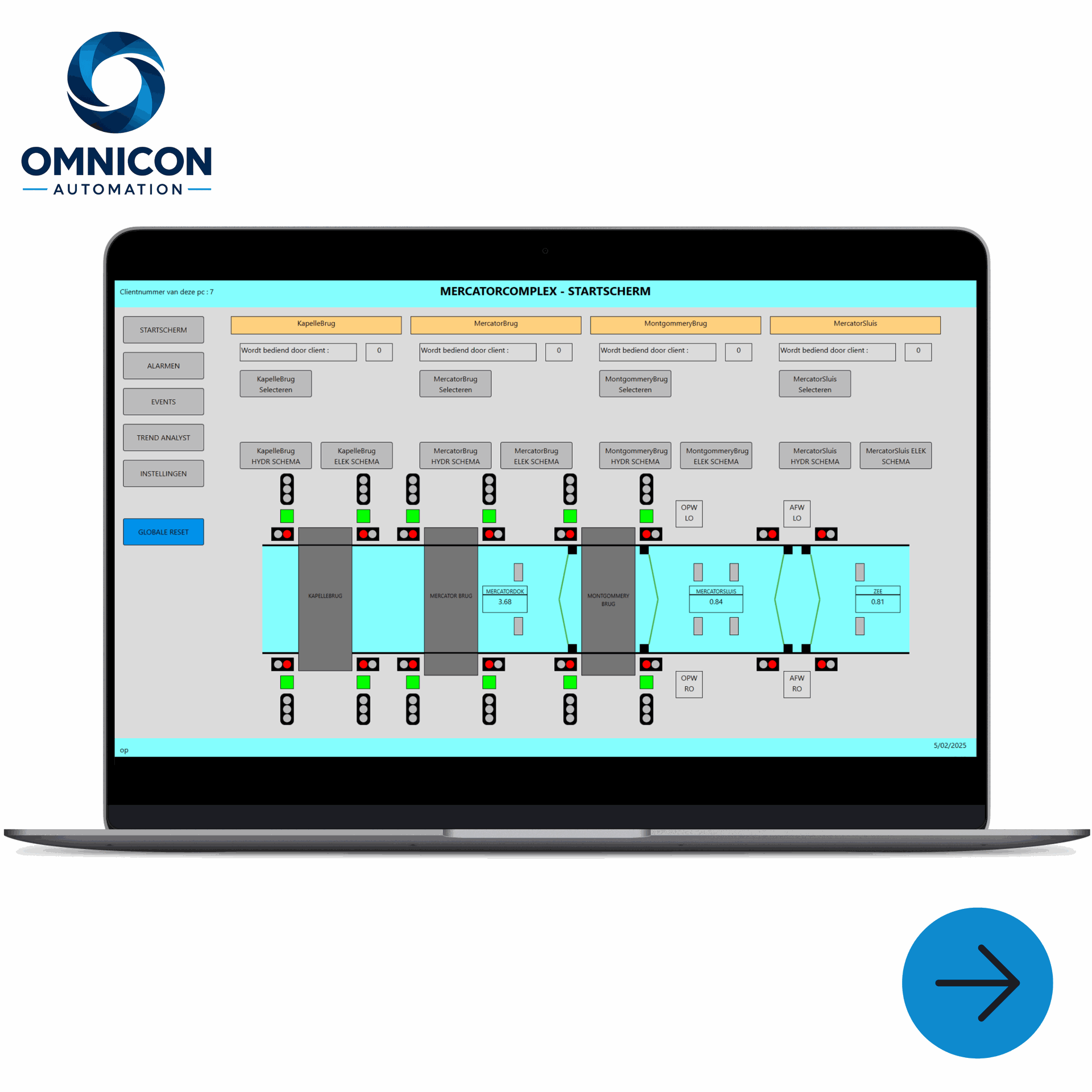 Our in-house software, EnvisionSCADA, is now at the heart of daily operations in Ostend’s Mercator Complex, where three bridges and a lock are coordinated as part of the city’s mobility flow. In partnership with our integrator Electro Goeminne Dikkelvenne, we developed a modern, intuitive system that unifies everything in one place:
